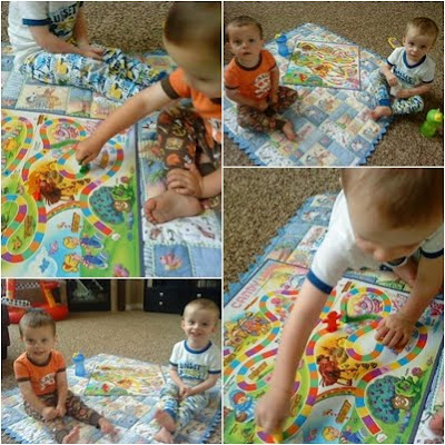 K so the other day it was really windy and so hot and going to rain but the boys wanted to go and have a picnic at the park so I said how about we have a picnic here in the living room and read some books and then play candyland so they said okay and they thought that was fun, my boys love to play candyland that is all they want to do every night and Ayden always has to be Yellow and Caleb has to be Green and of course they told me I have to be Red and Pat has to be Blue so we play that game alot I need to go and get more games because I am so over Candyland hehehe. They play it so well I told them from the start that we could only play this game if they played it the right way and waited for there turns and played by the rules yes this game takes us forever to play because I wont let them cheat but you gotta teach them sometime to play the right way right, I am thinking of reconsidering that decision hehehe! Anyways here are a few pics of our picnic and playing candyland!